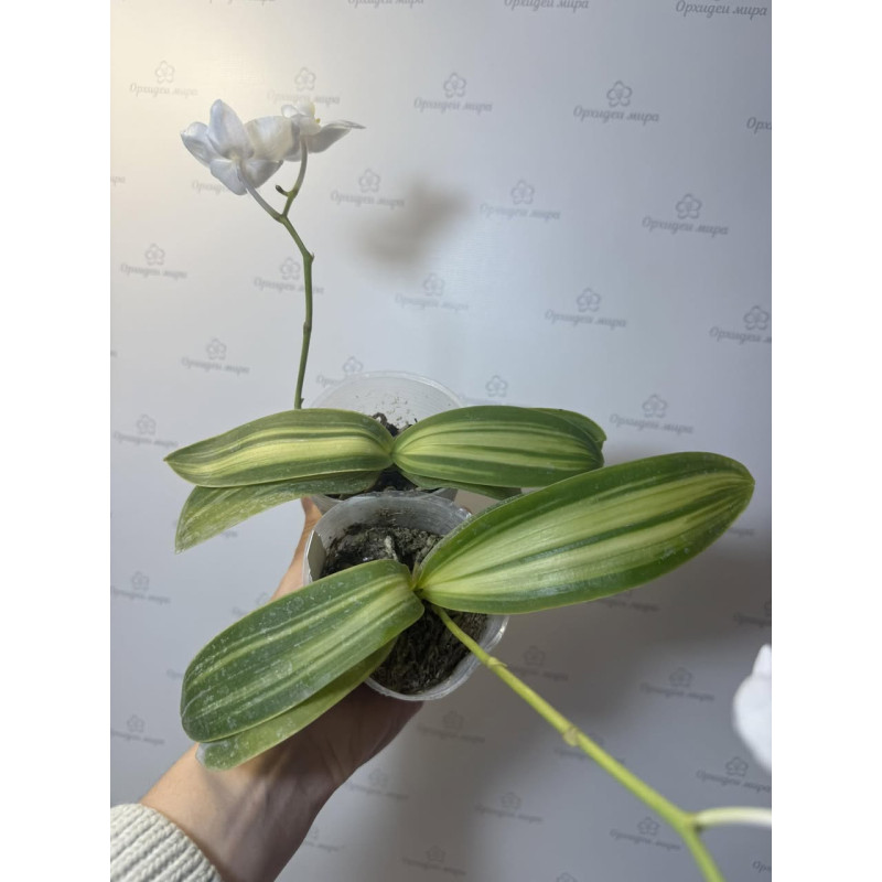 Приклад цвітіння з мережі. Сорт із красивим варієгатним листям.Phalaenopsis Amabilis inner variegated..