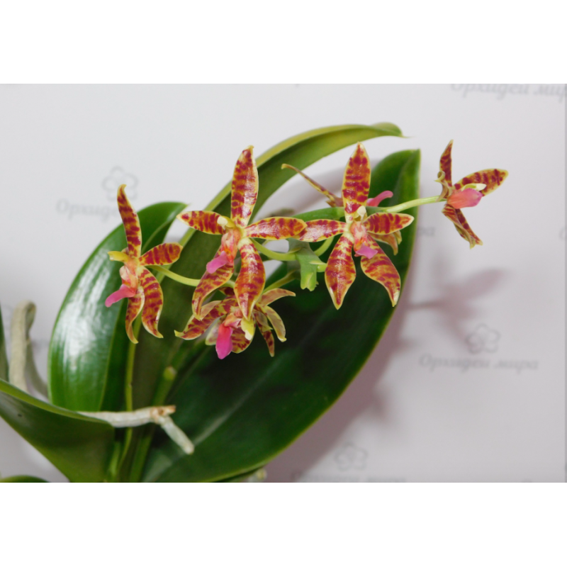 Фото цветения и пример растения от поставщика. Мы не гарантируем наличие цветоноса у всех растений.Phalaenopsis Miki Fortune Cat 3281..