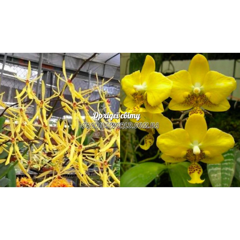 На фото батьки, рослини можуть бути без мутації. Рослини можуть бути не схожими на батьків. Renanthopsis Сitrina x Stuartiana Yellow..